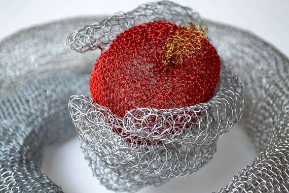 Knitted Wire Sculpture Choice Snake And Apple Etsy